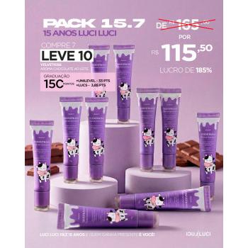 Preencha os dados abaixo, escolha uma forma de pagamento e receba em casa o seu Pack 15.7 - 15 Anos - Hidratante labial Velvet kiss Chocolate ao Leite 15g - Pague 7 leve 10