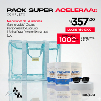 Preencha os dados abaixo, escolha uma forma de pagamento e receba em casa o seu PACK SUPER COMPLETO ACELERAA - Compre 03 Creatinas Ganhe Óculos + Bolsa de Praia